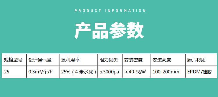 單孔膜曝氣器由ABS材料制作成的上、下管夾和配套橡膠膜片組合而成的新型供氣充氧裝著。在曝氣生物濾池工藝中,單孔膜曝氣器通過向濾料層強制輸送高流速的空氣來滿足濾料上的微生物新陳代謝所需要的足夠和穩定的氧份。整個濾池內部的布氣均勻、氣量穩定提高了系統的有機負荷要求。