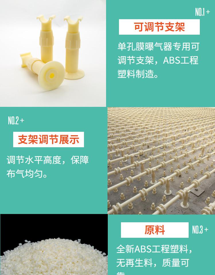 5、曝氣管網在設計過程中必須按照0.5-0.8米左右的距離考慮安裝可調節固定支架。